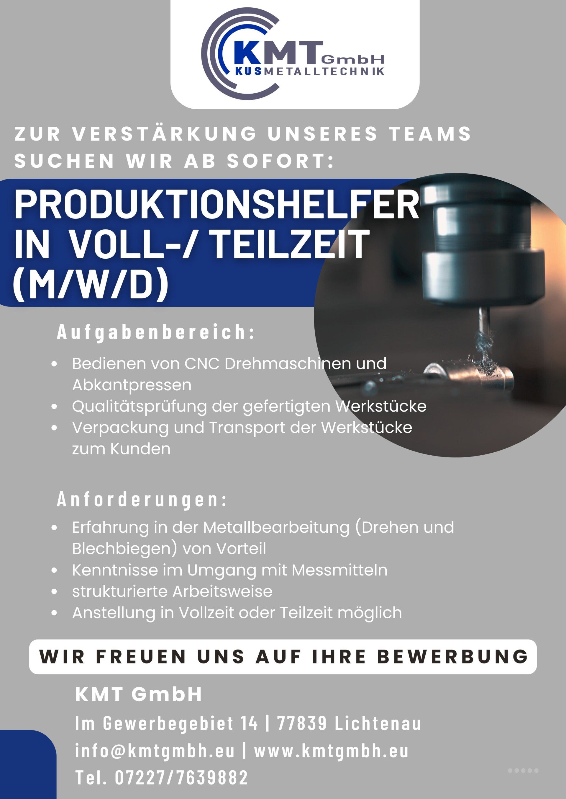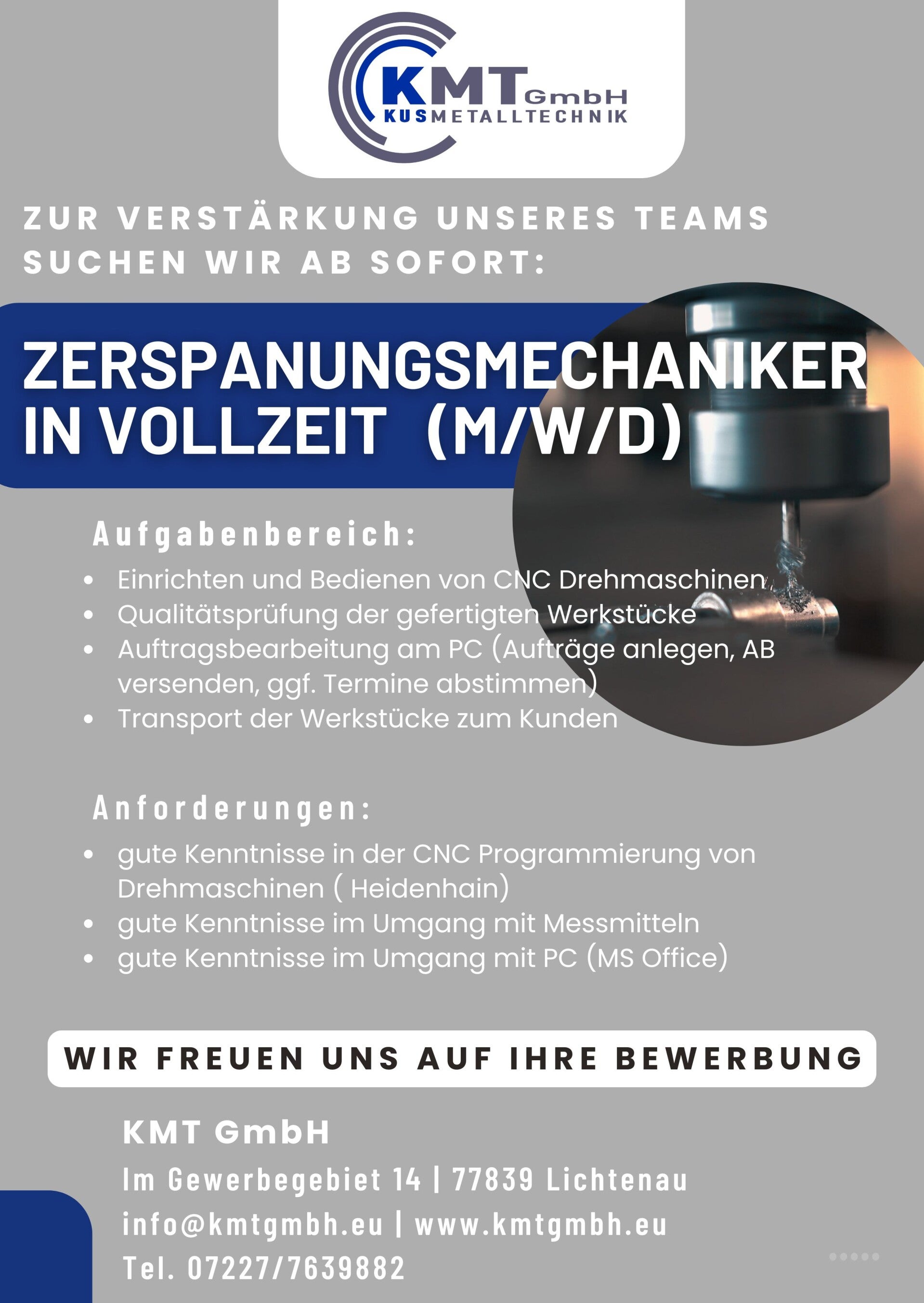 BEWERBEN SIE SICH GERNE PER EMAIL ODER POST!